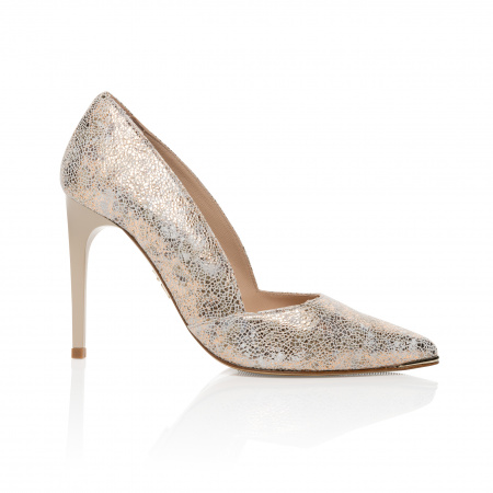 The heel height consists of 9 centimeters. The insole is made of leather and has a foam footbed of 2 centimeters thick. On top of this foam footbed we placed a gel pad to achieve maximum comfort. The outsole has its own logo and anti-slip strip. To protect the leather, each heel has a unique protection tip in the color platinum. This guarantees the maximum protection of the shoe.