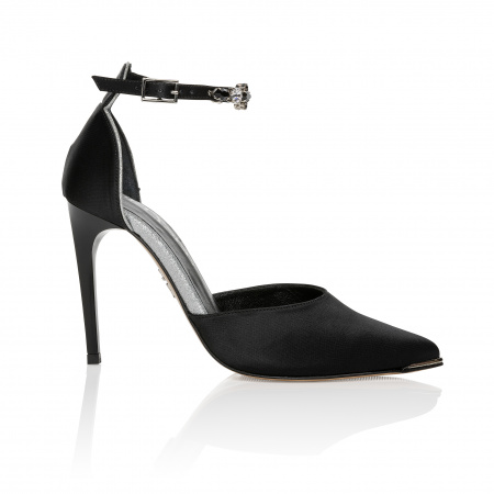 The Satin model (Pink, purple and silver) has a sleek, playful and modern design. The colors of this model are festive and remarkable. The perfect finish of the Crystal ornament provides an ultra-luxurious look. This model is made of sustainable satin and is ultra animal-friendly. The heel height consists of 9 centimeters.